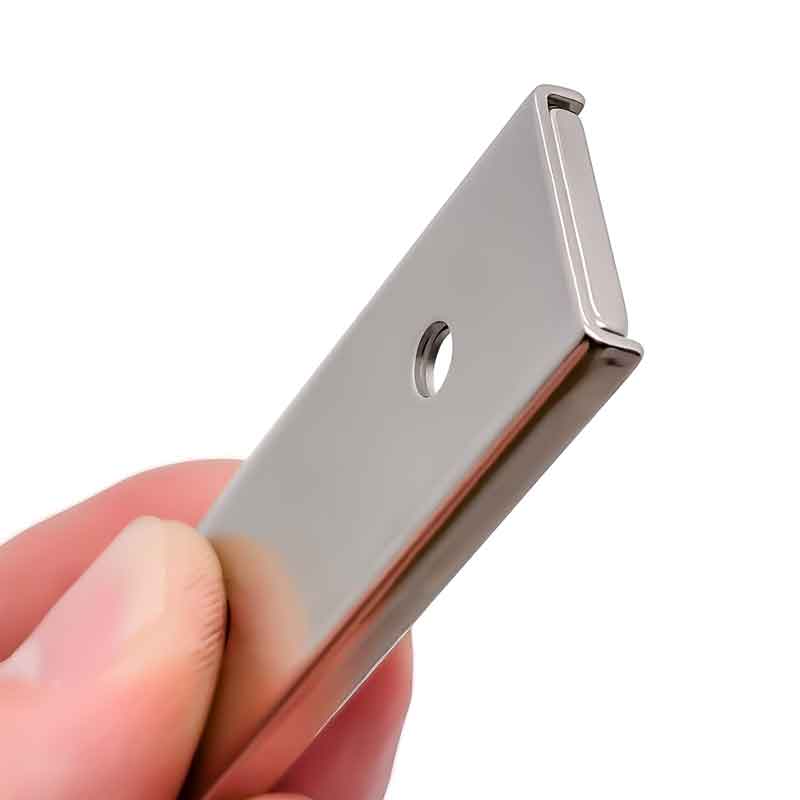 Un canal magnétique se compose d'aimants en néodyme enfermés dans un canal en acier, améliorant considérablement la force de protection de l'aimant lorsqu'il est en contact direct avec un objet. Cette conception protège les aimants fragiles des impacts et des dommages répétés. L'aimant est recouvert d'un revêtement pour éviter la corrosion.